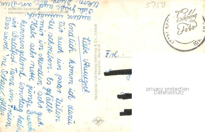 43350836 alte Postkarte Menden Sauerland Hoennepartie Walramgymnasium postalisch gelaufen Erhaltung siehe scans [KathaD81] KatCode: 11110005962040