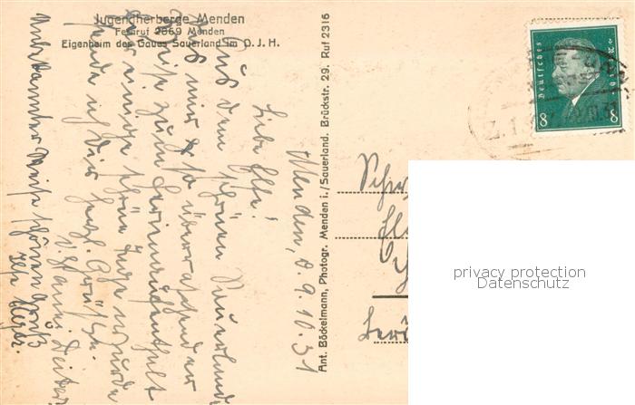 73772669 alte Postkarte Menden Sauerland Jugendherberge postalisch gelaufen Erhaltung siehe scans [FriedD77] KatCode: 11110005962040