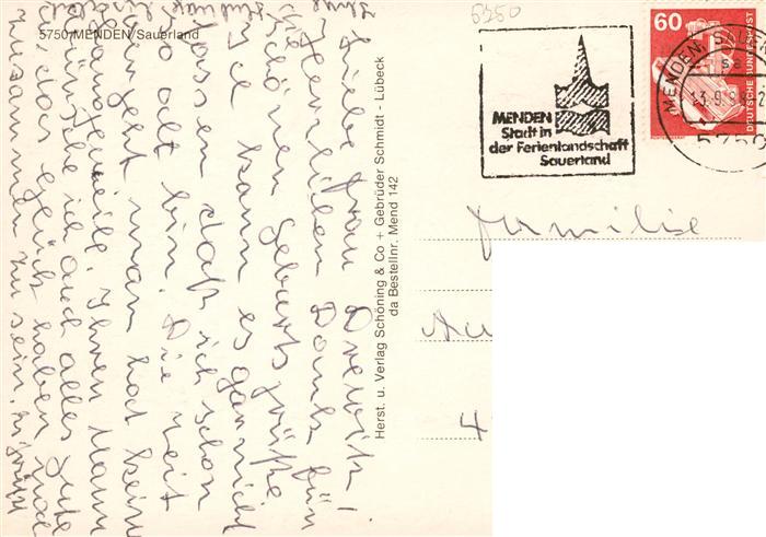 73943396 alte Postkarte Menden Sauerland Kirchen Fachwerkhaus Ortsmotiv Park postalisch gelaufen Erhaltung siehe scans [WerneD78] KatCode: 11110005962040