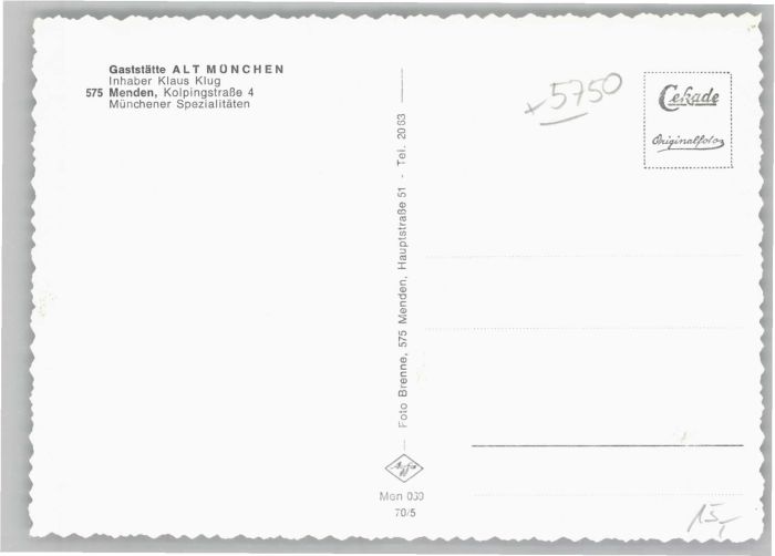40682911 Menden Sauerland Menden Gaststätte Alt München * KatCode 11110005962040