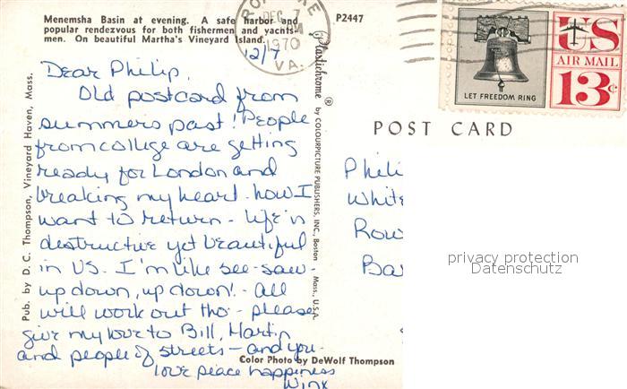 73130333 old postcard Menemsha Basin Martha Vineyard Island postalisch gelaufen Erhaltung siehe scans [NatalD47] KatCode: 14140230000000