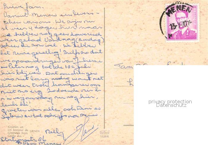 72893063 carte postale Menen postalisch gelaufen Erhaltung siehe scans [LiesaD40] KatCode: 11070034000420