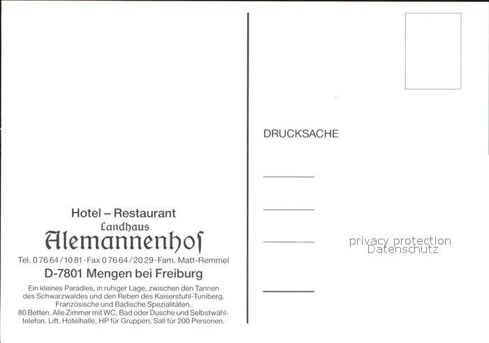 72547598 Mengen Schallstadt Hotel Restaurant Alemannenhof postalisch nicht gelaufen Erhaltung siehe scans [WerneD78 kv017box] KatCode: 11110008315098
