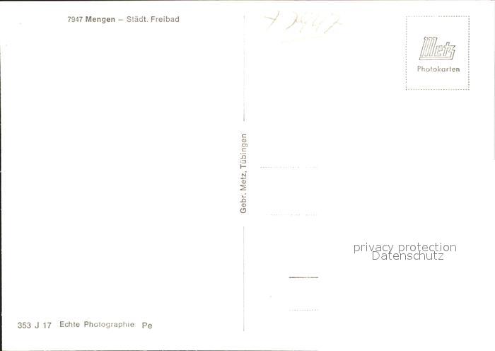 41815122 Mengen Wuerttemberg Staedtisches Freibad Schwimmbad postalisch nicht gelaufen Erhaltung siehe scans KatCode: 11110008437076