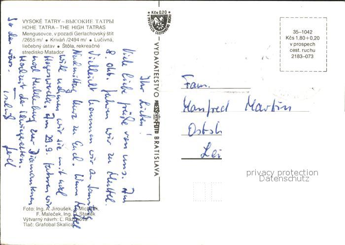 old postcard Mengusovce Panorama Hohe Tatra Lucivna Liecebny ustav Stola Rekreacne stredisko Matador postalisch gelaufen Erhaltung siehe scans