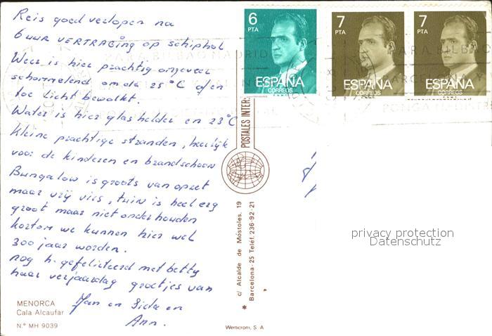 old postcard Menorca Fliegeraufnahme Cala Alcaufar postalisch gelaufen Erhaltung siehe scans