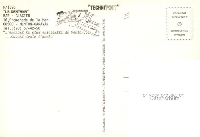 13365174 Menton Alpes Maritimes Bar Glacier Le Santana postalisch nicht gelaufen Erhaltung siehe scans [LiesaD40] KatCode: 11170006206083