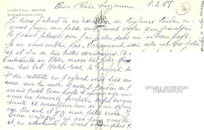 13493368 Menton Alpes Maritimes Boulevard General Leclerc postalisch nicht gelaufen Erhaltung siehe scans [FriedD77] KatCode: 11170006206083