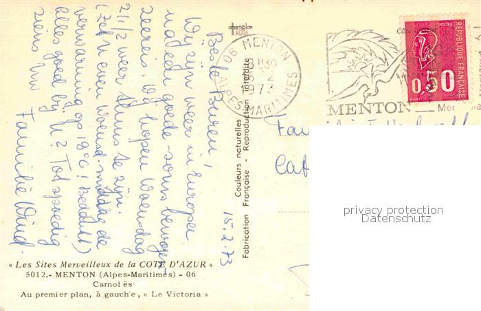 12822065 carte postale Menton Alpes Maritimes Fliegeraufnahme mit Strand postalisch gelaufen Erhaltung siehe scans [LiesaD40] KatCode: 11170006206083