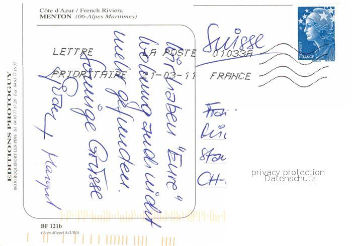 12720477 carte postale Menton Alpes Maritimes Hafen Basilika St Michel postalisch gelaufen Erhaltung siehe scans [KathaD79] KatCode: 11170006206083