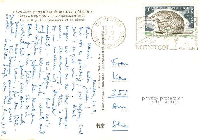 13359774 carte postale Menton Alpes Maritimes Hafen Panorama postalisch gelaufen Erhaltung siehe scans [KathaD81] KatCode: 11170006206083