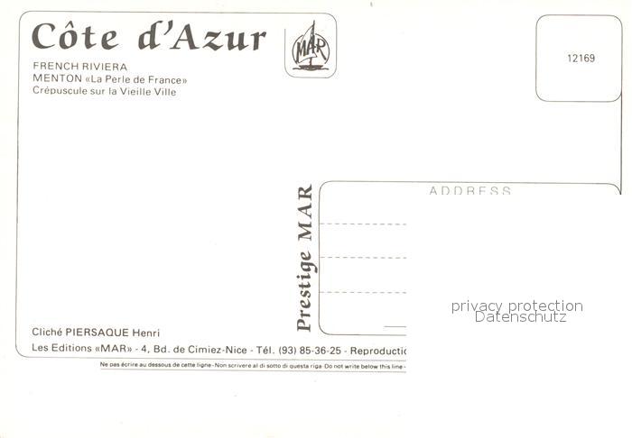 13596312 Menton Alpes Maritimes Hafen Vieille Ville postalisch nicht gelaufen Erhaltung siehe scans [LiesaD40] Lies Katcode 11170006206083