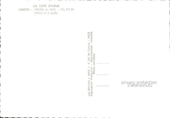 11978576 Menton Alpes Maritimes Hotel du Parc et le jardin Palmiers postalisch nicht gelaufen Erhaltung siehe scans KatCode: 11170006206083