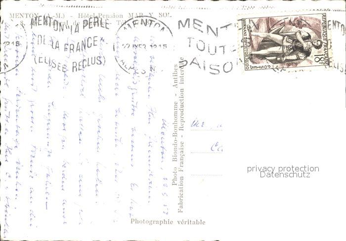 12029147 Menton Alpes Maritimes Hotel Pension Mar y Sol KatCode 11170006206083