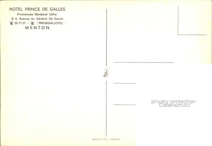 11866000 Menton Alpes Maritimes Hotel Pince de Galles postalisch nicht gelaufen Erhaltung siehe scans KatCode: 11170006206083