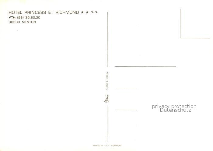 13149091 Menton Alpes Maritimes Hotel Princess et Richmond postalisch nicht gelaufen Erhaltung siehe scans [FriedD77] KatCode: 11170006206083
