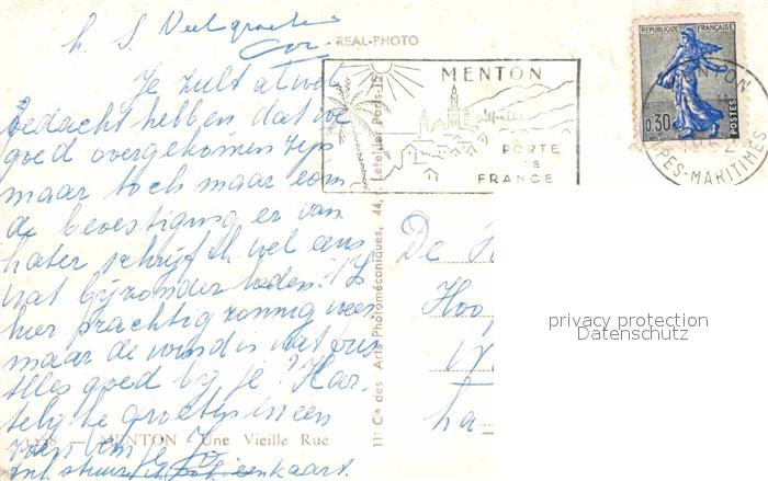 12821110 carte postale Menton Alpes Maritimes Kleine Gasse Esel und Reiter postalisch gelaufen Erhaltung siehe scans [AndreD76] KatCode: 11170006206083