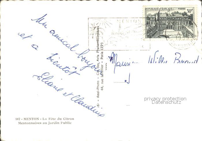 12353937 carte postale Menton Alpes Maritimes La Fete du Citron Mentonnaises au Jardin Public postalisch gelaufen Erhaltung siehe scans KatCode: 11170006206083