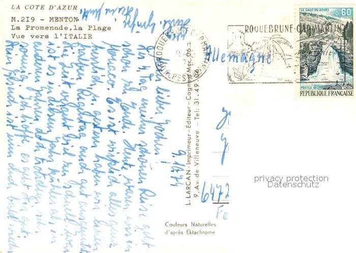 13362011 carte postale Menton Alpes Maritimes La Promenade et la plage Cote d Azur postalisch gelaufen Erhaltung siehe scans [FriedD77] KatCode: 11170006206083