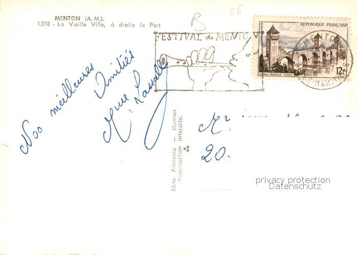 13536132 carte postale Menton Alpes Maritimes La vieille ville et le port Alpes vue aérienne postalisch gelaufen Erhaltung siehe scans [FriedD77] KatCode: 11170006206083