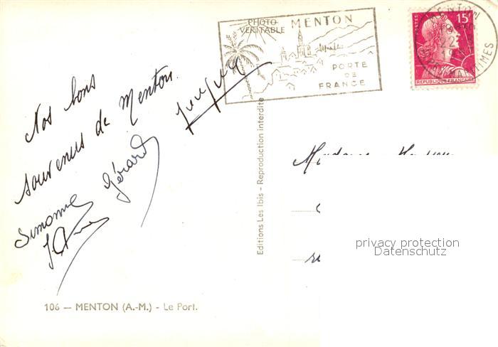13583678 Menton Alpes Maritimes Le Port postalisch gelaufen Erhaltung siehe scans [WerneD78] carte postale Wern Katcode 11170006206083