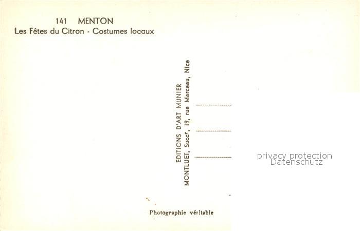 13536597 Menton Alpes Maritimes Les Fêtes du Citron Costumes locaux Trachten postalisch nicht gelaufen Erhaltung siehe scans [FriedD77] KatCode: 11170006206083