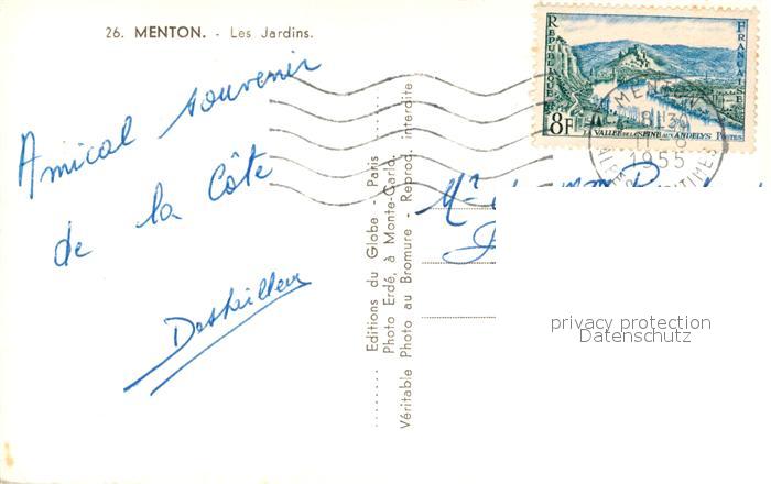13536064 carte postale Menton Alpes Maritimes Les Jardins postalisch gelaufen Erhaltung siehe scans [WerneD78] KatCode: 11170006206083