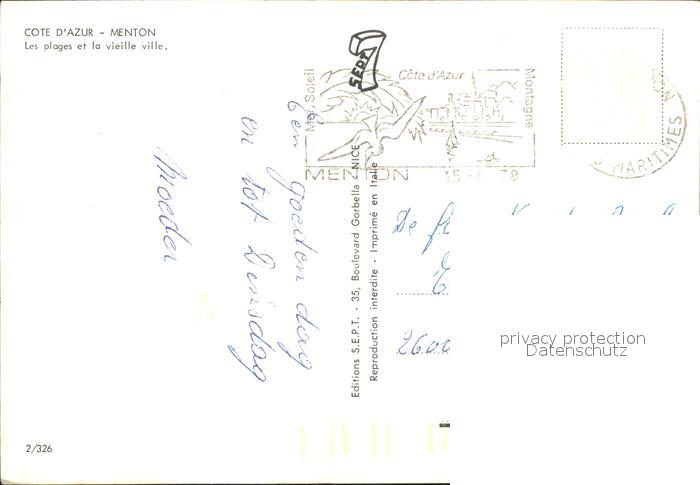 12606589 carte postale Menton Alpes Maritimes Les plages et la vieille ville postalisch gelaufen Erhaltung siehe scans [NatalD47] KatCode: 11170006206083