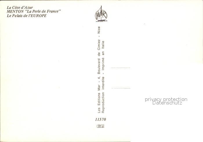 12330076 Menton Alpes Maritimes Palais de L Europe postalisch nicht gelaufen Erhaltung siehe scans KatCode: 11170006206083