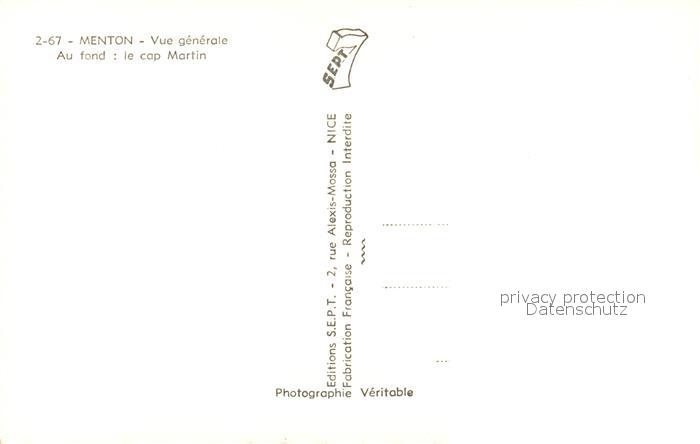 13570418 Menton Alpes Maritimes Vue Generale au fond Cap Martin Côte d Azur postalisch nicht gelaufen Erhaltung siehe scans [FriedD77] KatCode: 11170006206083