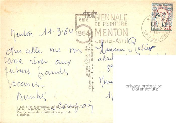 13583668 Menton Alpes Maritimes Vue generale de la ville et son port de plaisance postalisch gelaufen Erhaltung siehe scans [WerneD78] carte postale Wern Katcode 11170006206083