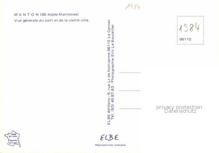 12899077 carte postale Menton Alpes Maritimes Vue generale du port et de la vieille ville postalisch gelaufen Erhaltung siehe scans [FriedD77] KatCode: 11170006206083
