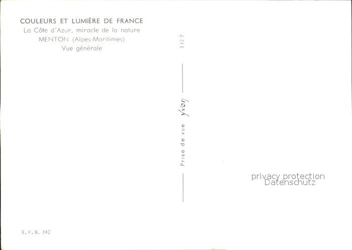 12229992 Menton Alpes Maritimes Vue generale Plage Montagnes Cote d Azur postalisch nicht gelaufen Erhaltung siehe scans KatCode: 11170006206083