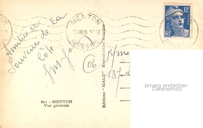 13479624 carte postale Menton Alpes Maritimes Vue Generale Port et la ville postalisch gelaufen Erhaltung siehe scans [FriedD77] KatCode: 11170006206083