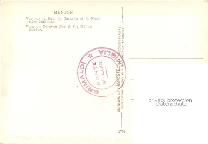13583136 Menton Alpes Maritimes Vue sur la Baie de Garavan et la Frontiere Italienne postalisch nicht gelaufen Erhaltung siehe scans [WerneD78] Wern Katcode 11170006206083