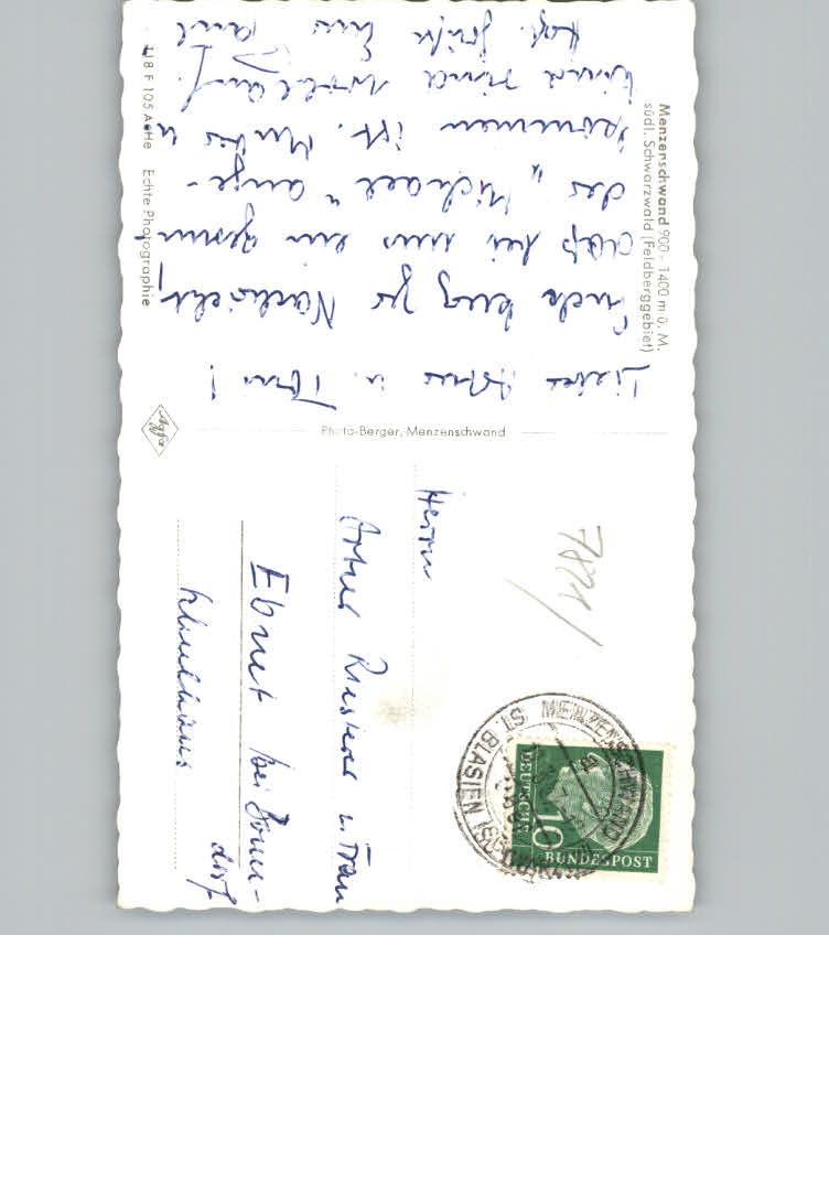 31154184 Menzenschwand postalisch nicht gelaufen KatCode: 11110008337097