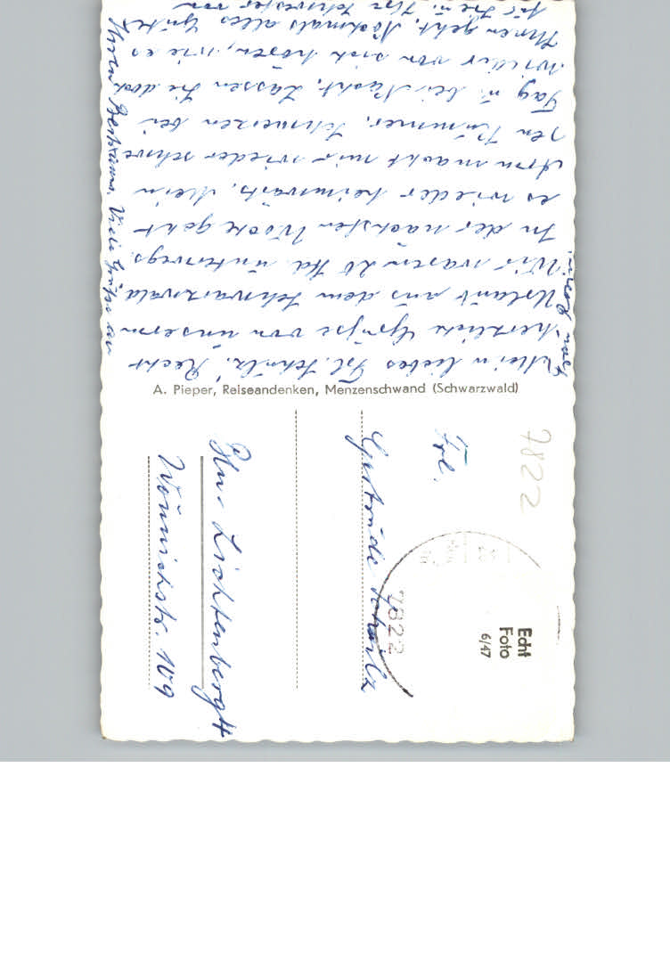 31154063 Menzenschwand postalisch nicht gelaufen KatCode: 11110008337097