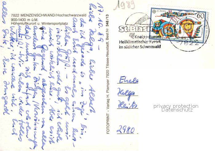 72887316 alte Postkarte Menzenschwand postalisch gelaufen Erhaltung siehe scans [LiesaD40] KatCode: 11110008337097