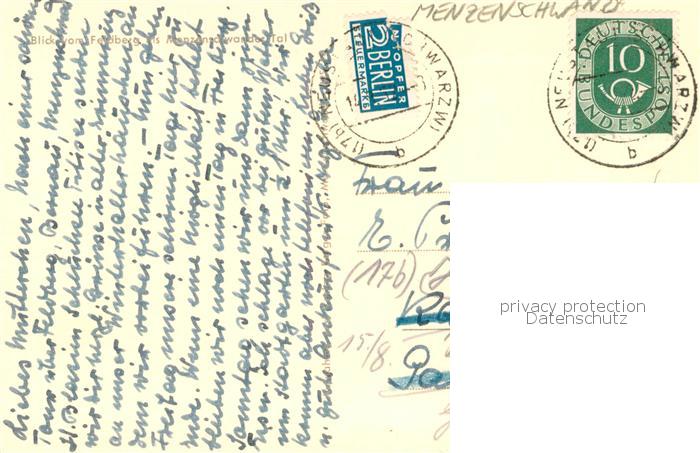 73770174 alte Postkarte Menzenschwand Blick vom Feldberg postalisch gelaufen Erhaltung siehe scans [WerneD78] KatCode: 11110008337097