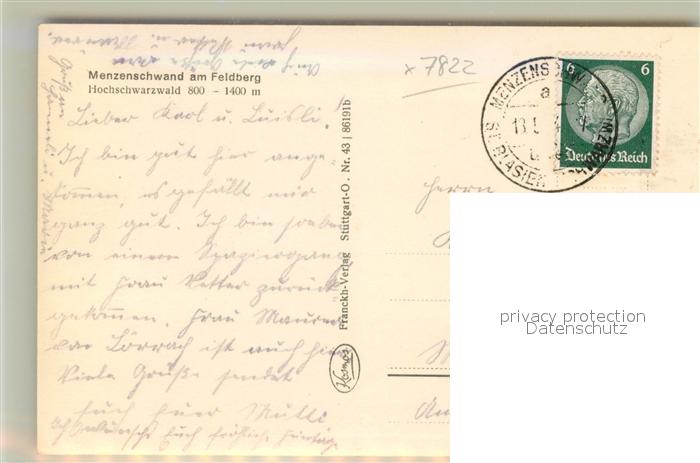 42943463 alte Postkarte Menzenschwand Erholungsheim postalisch gelaufen Erhaltung siehe scans [AndreD76] KatCode: 11110008337097