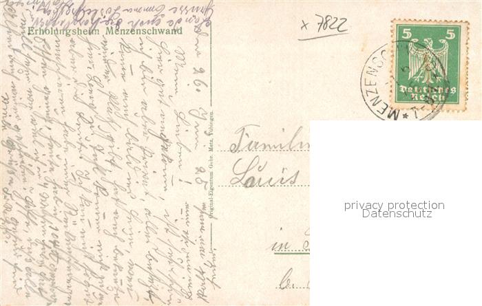 42942322 alte Postkarte Menzenschwand Erholungsheim postalisch gelaufen Erhaltung siehe scans [AndreD76] KatCode: 11110008337097
