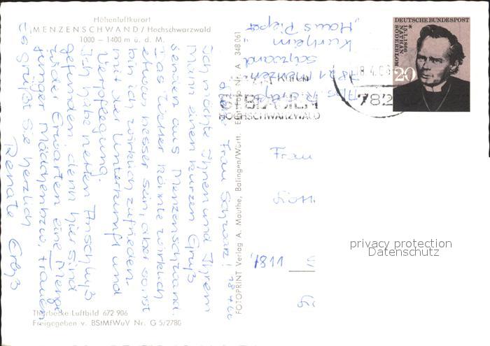 31850105 alte Postkarte Menzenschwand Fliegeraufnahme postalisch gelaufen Erhaltung siehe scans KatCode: 11110008337097