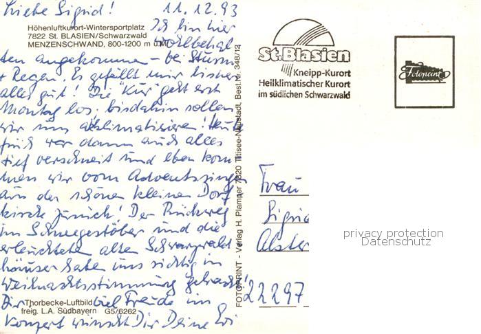 73836192 Menzenschwand Fliegeraufnahme postalisch nicht gelaufen Erhaltung siehe scans [WerneD78] KatCode: 11110008337097