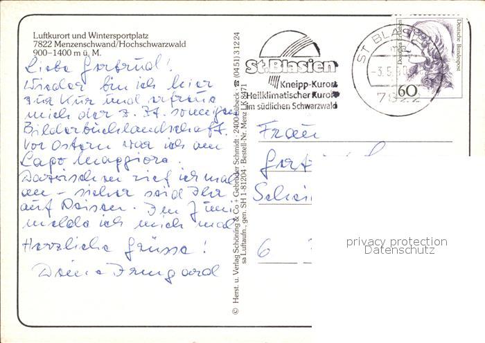 72570654 alte Postkarte Menzenschwand Fliegeraufnahme postalisch gelaufen Erhaltung siehe scans [AndreD76] KatCode: 11110008337097