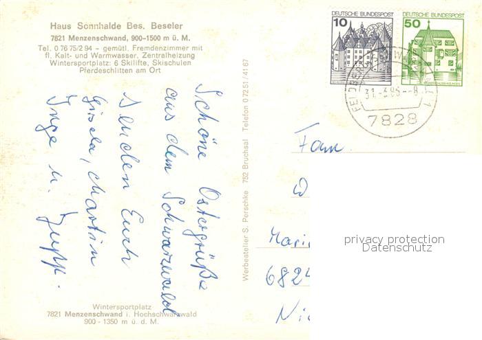73313749 alte Postkarte Menzenschwand Fliegeraufnahme Haus Sonnhalde postalisch gelaufen Erhaltung siehe scans [LiesaD40] KatCode: 11110008337097
