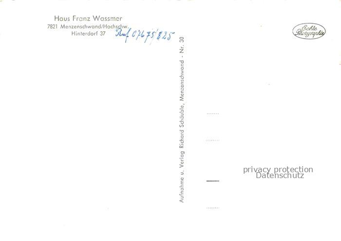 74091246 Menzenschwand Gaestehaus Pension Haus franz Wassmer postalisch nicht gelaufen Erhaltung siehe scans [FriedD77] KatCode: 11110008337097
