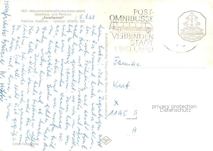 73641968 alte Postkarte Menzenschwand Gasthaus Pension Forellenhof Teilansichten postalisch gelaufen Erhaltung siehe scans [WerneD78] KatCode: 11110008337097