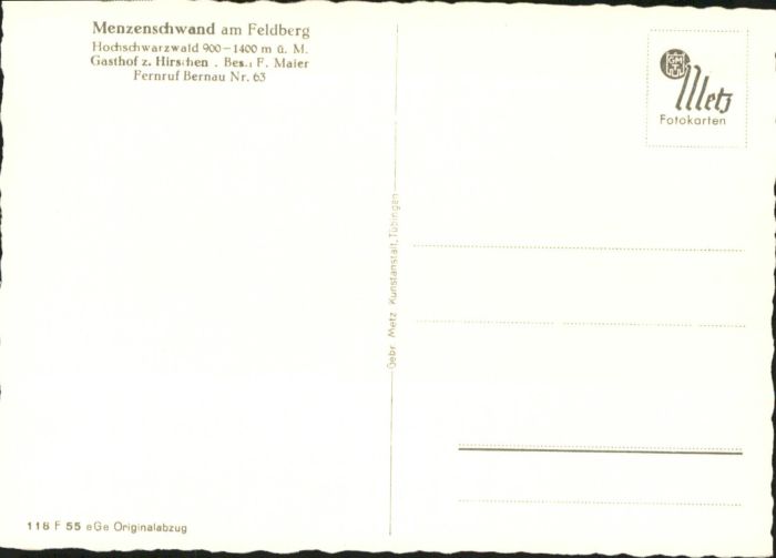 40770120 Menzenschwand Gasthaus zum Hirschen KatCode 11110008337097