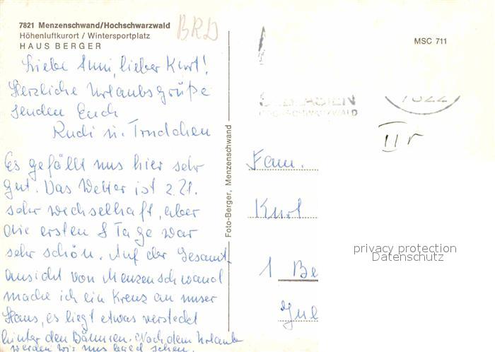 72796871 alte Postkarte Menzenschwand Haus Berger postalisch gelaufen Erhaltung siehe scans [KathaD81] KatCode: 11110008337097