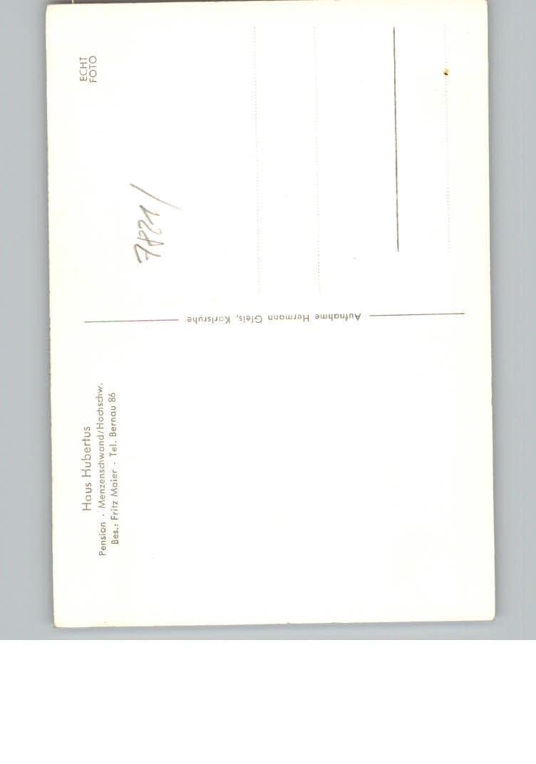 31154237 Menzenschwand Haus Hubertus postalisch nicht gelaufen KatCode: 11110008337097
